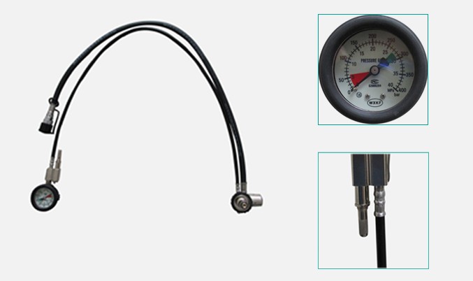 4. 減壓總成(快速鎖緊插頭,氣源壓力表,氣瓶余壓報警器,高壓導(dǎo)氣管組,中壓導(dǎo)氣管組,減壓器插頭座組):壓力表表盤采用熒光材料,在暗處也可以清楚的觀察到壓力值。表殼采用高強(qiáng)度抗沖擊材料,并設(shè)有橡膠保護(hù)套,起到防水、減震、防塵等作用。報警裝置連在接近壓力表的高壓導(dǎo)管上,氣瓶中的壓力降至5MPA時,報警哨會發(fā)出持續(xù)的報警聲響。