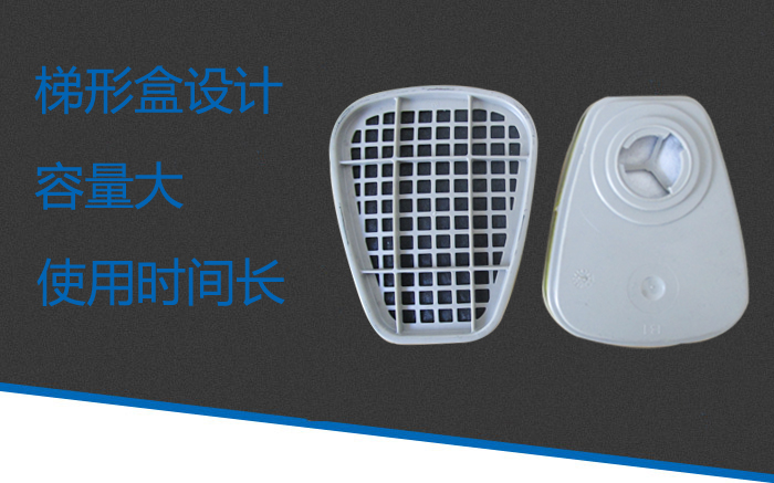 三 金盾E型7號(hào)濾毒盒采用梯形盒設(shè)計(jì),內(nèi)部可裝填更多活性炭藥劑,容量大,吸附效果好,使用時(shí)間長(zhǎng)。
