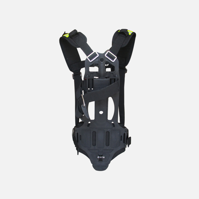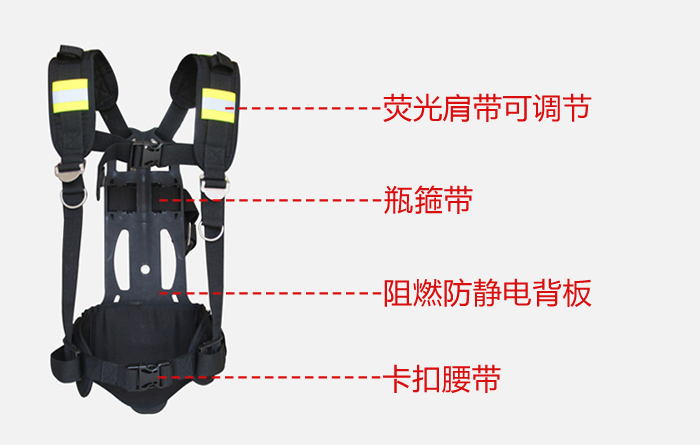 金盾正壓式空氣呼吸器背板采用碳纖維復(fù)合材料注塑加工,質(zhì)輕堅(jiān)韌,防水阻燃,防靜電,背托根據(jù)人體背部生理曲線特征,使裝具的重量主要分布在臀部,從而增強(qiáng)佩戴者肩臂的活動(dòng)能力,攜帶輕便,不易滑動(dòng)和移位;肩帶由阻燃聚酯織物制成,背帶采用雙側(cè)可調(diào)結(jié)構(gòu),使重量落于腰胯部位,減輕肩帶對(duì)胸部的壓迫,使呼吸順暢,并在肩帶上設(shè)有寬大彈性襯墊,減輕對(duì)肩的壓迫,肩帶特添加兩對(duì)熒光條,方便在夜間作業(yè),定位,更安全;卡扣腰帶設(shè)計(jì),易于調(diào)節(jié),鎖緊后不脫落無(wú)松動(dòng),穿戴快捷,大大節(jié)約了救援搶險(xiǎn)時(shí)間。