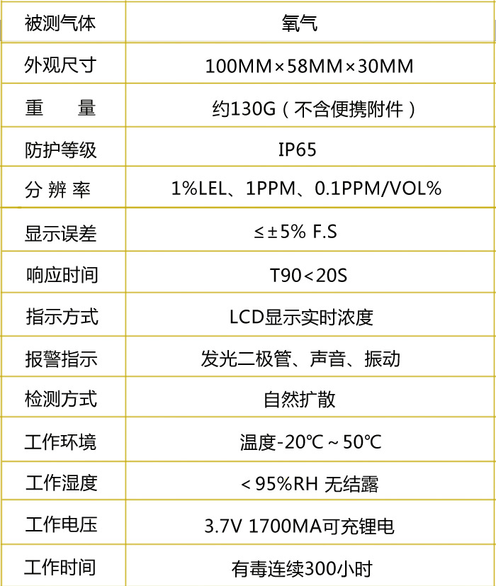 氣體檢測儀規(guī)格參數(shù):