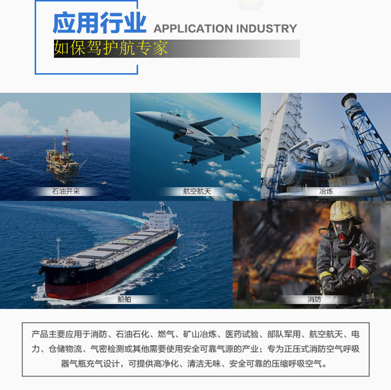 JD-KY100系列高壓空氣壓縮機(jī)是一級(jí)進(jìn)排氣閥采用舌簧閥片,二、三、四級(jí)進(jìn)氣采用氣缸掃氣孔方式將壓縮空氣自由吸入氣缸,排氣使用環(huán)狀閥。JD-KY100系列作為一種提高氣體壓力或輸送氣體的機(jī)器,可將自由狀態(tài)下的空氣,壓縮至表壓為20~30兆帕的壓縮空氣,該空氣通過機(jī)組中的分離器與過濾器后,脫除了含在高壓空氣中的油份和雜質(zhì)。JD-KY100高壓空氣壓縮機(jī)可廣泛適用于消防呼吸、潛水作業(yè)、潛水運(yùn)動(dòng)、漁業(yè)捕撈、水產(chǎn)養(yǎng)殖、水下工程、船舶制造及制造業(yè)、軍事和航空領(lǐng)域,可為作業(yè)人員和任何需要使用安全可靠氣源的產(chǎn)業(yè),提供高凈化、安全可靠的壓縮呼吸空氣。
