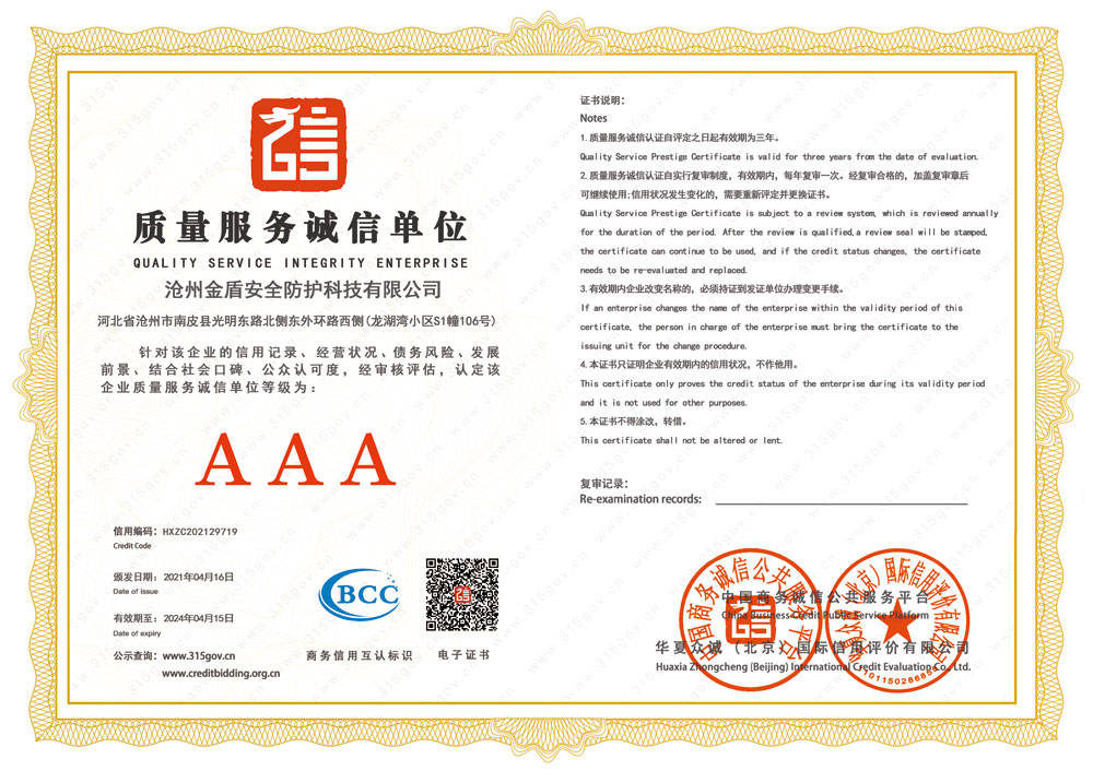 版權所有 滄州金盾安全防護科技有限公司 備案號: 冀ICP備16001347號-1 地址:河北省滄州市南皮縣光明東路北側(cè)東外環(huán)路西側(cè) 電話:0317-5251010 400-888-7543 郵箱:2277468668@qq.com Copyright 2014-2018.All Rights Reserved